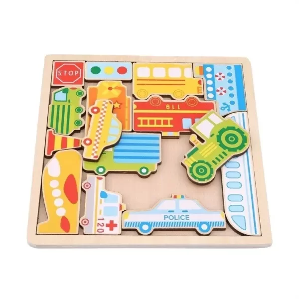 Rompecabezas de madera 3D de dibujos animados para niños juguete de desarrollo de inteligencia